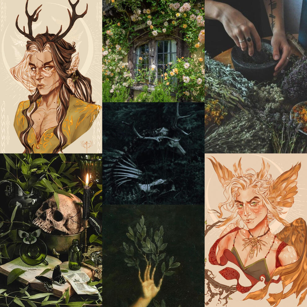 Growing up, they made their own home, on the outskirts of the city, among the trees and near a small temple that Mirion helped with. Lorien devoted himself to the study of nature and magic, working on experiments that were disapproved of by the Soiltrace Archive, but ultimately proved to be very necessary. Lorien never fully got rid of his curse. There were times when his rational thinking was clouded by dark clouds, and then his experiments took on a darker nature. He was working on finding a connection with the beasts, how to make the monsters listen to him. Mirion was always watching from the sidelines, knowing when to intervene to stop the dark spiral his loved one was falling into. He was here for him, always.